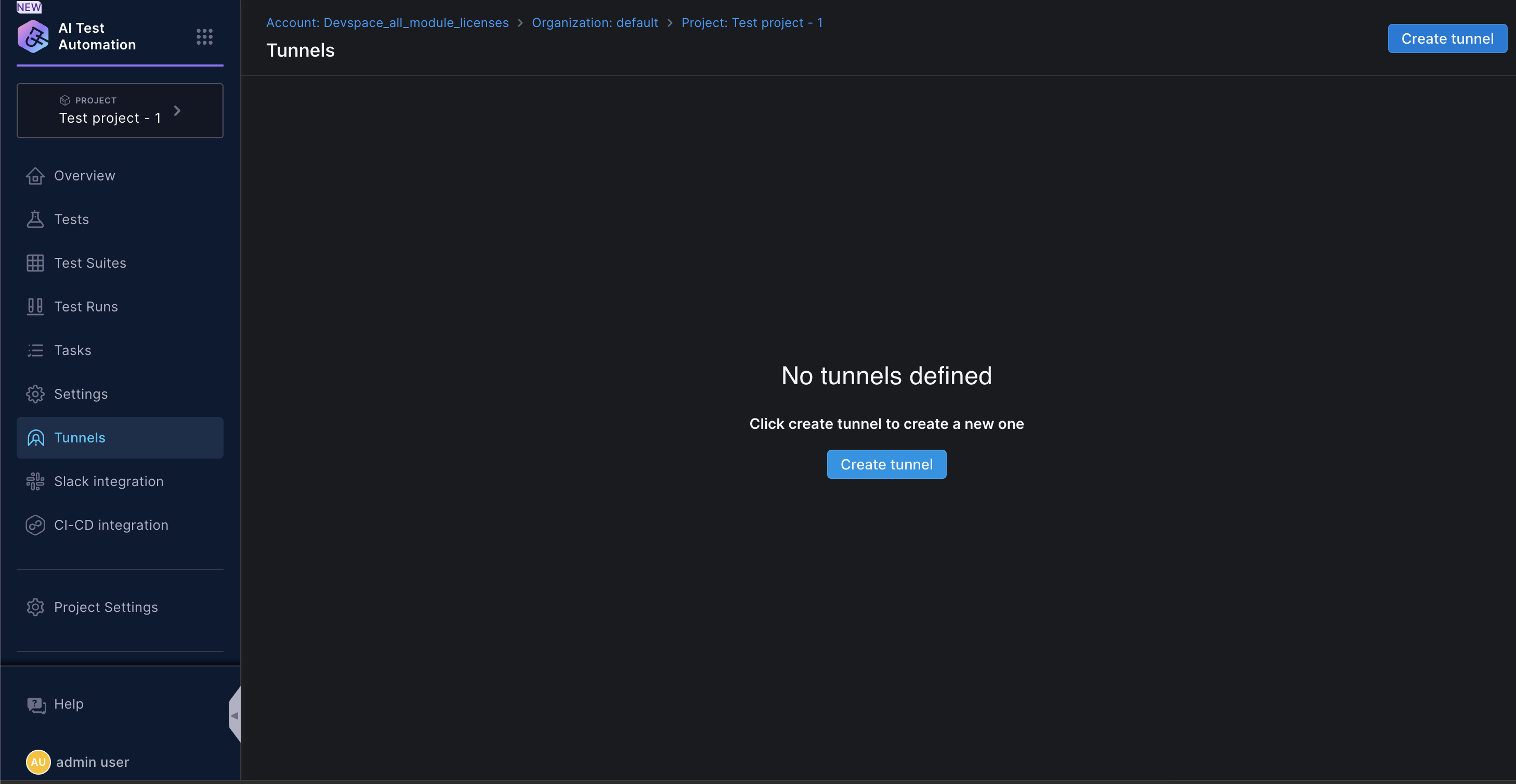To create a private location, click on “Tunnels” on the navigation bar and the “Create Tunnel” button on the top of the Tunnels page.