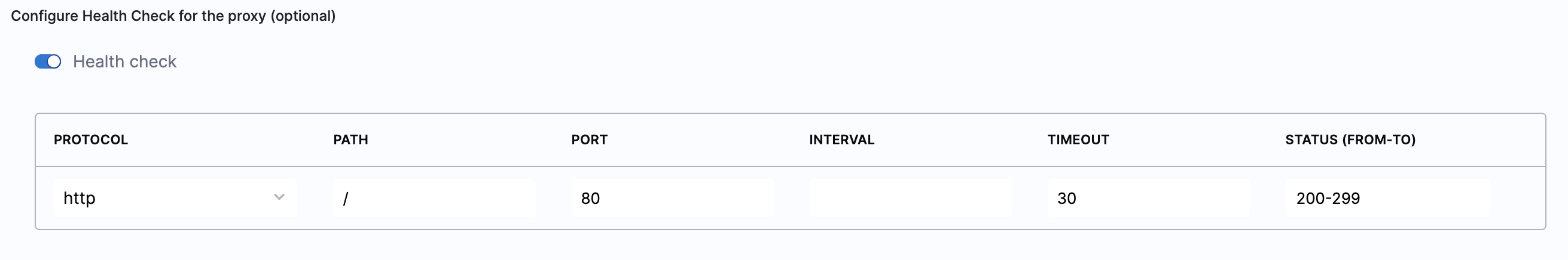 Toggle the Health check button to configure the health check. Health check status should be successful for the AutoStopping rules to come into effect. Set a health check for the underlying application that is running on the cloud resources managed by this AutoStopping rule. The load balancer periodically sends requests as per the settings below to the application. If your application does not support health check or you do not have any application running, you can disable the health check.