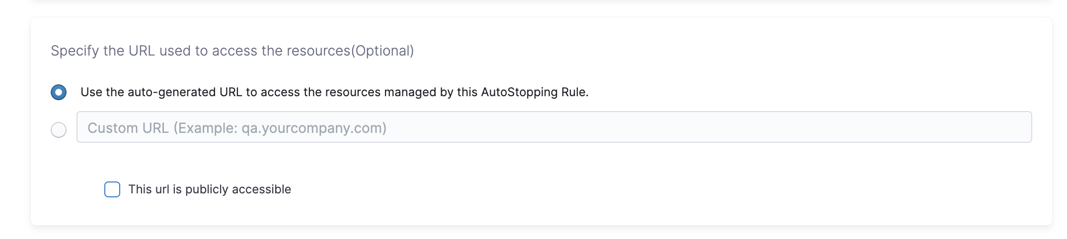 Select Use the auto-generated URL to access the resources managed by this AutoStopping Rule.