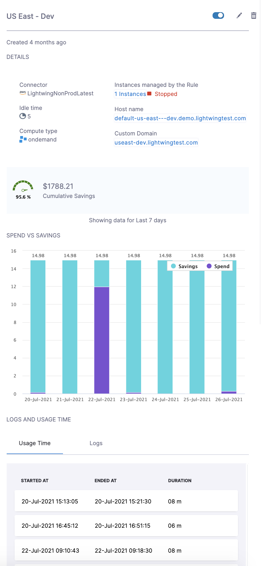 AutoStopping Rules make sure that your non-production resources run only when used, and never when idle. It also allows you to run your workloads on fully orchestrated spot instances without any worry of spot interruptions.