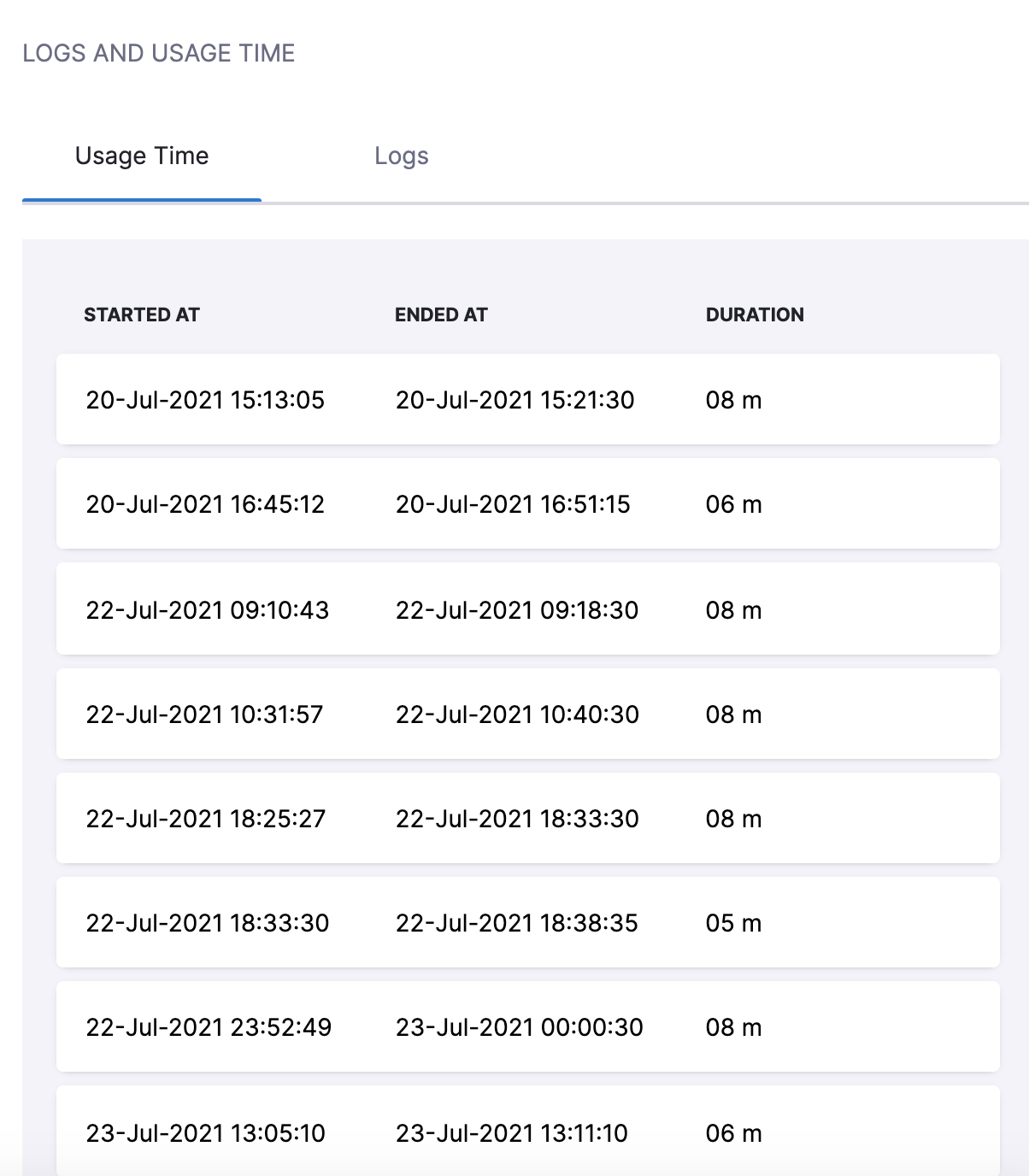1. Usage Time: This shows the details of the time at which the rule started and ended for seven days.