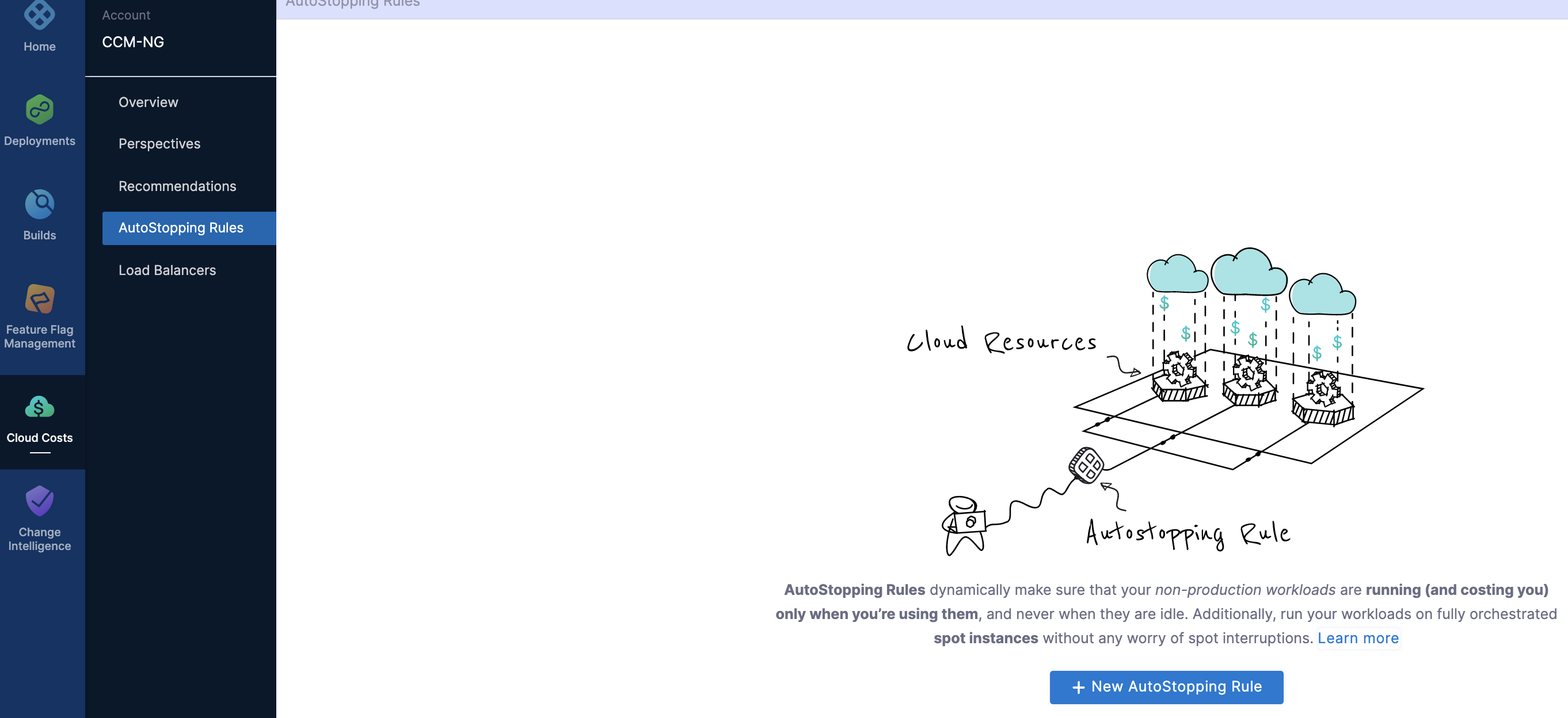 1. In Cloud Costs, in AutoStopping Rules, click New AutoStopping Rule.