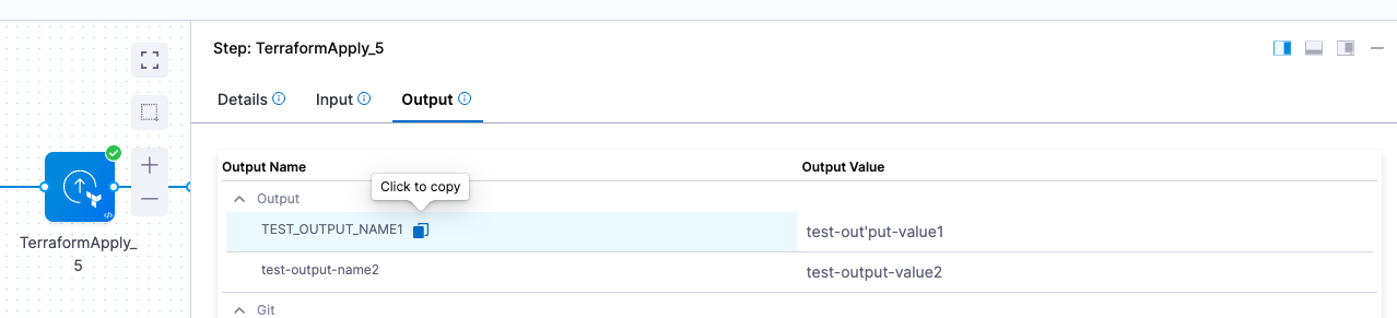 4. Copy the expression. When you paste it, it will look something like <+pipeline.stages.stage1.spec.execution.steps.TerraformApply_1.output.TF_JSON_OUTPUT_ENCRYPTED>.