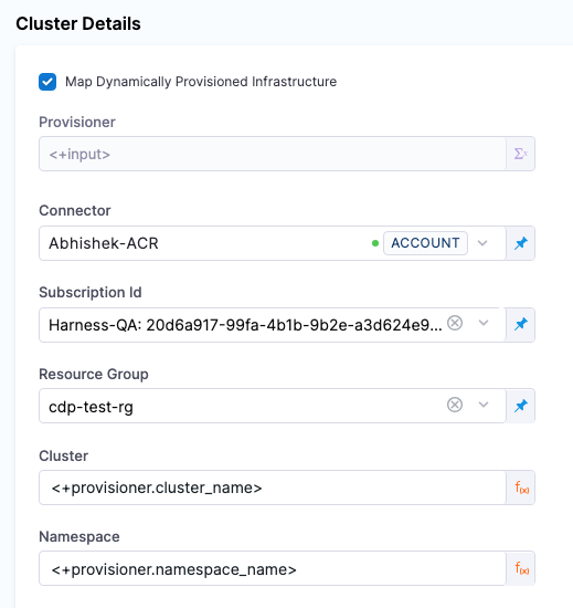 - In the Harness infrastructure, enable the option Map Dynamically Provisioned Infrastructure.