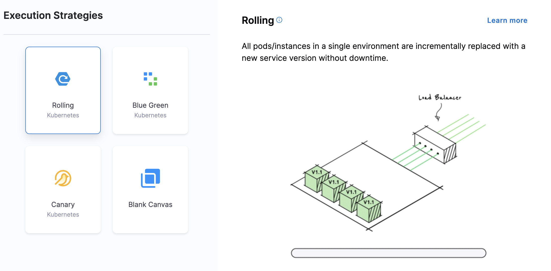Now that the stage's infrastructure is complete, you can select the deployment strategy for this stage of the pipeline.