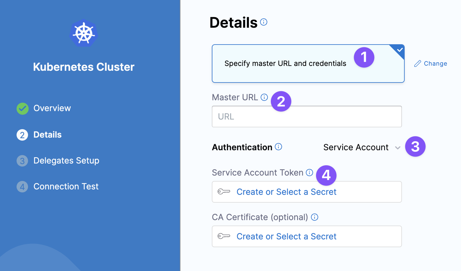 The | base64 -d piping decodes the token. You can now enter it into the Harness Kubernetes Cluster Connector Service Account Token using a Harness secret.