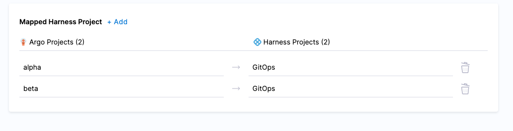 • A non-BYOA setup does not support mapping multiple Argo CD projects to a single Harness project.