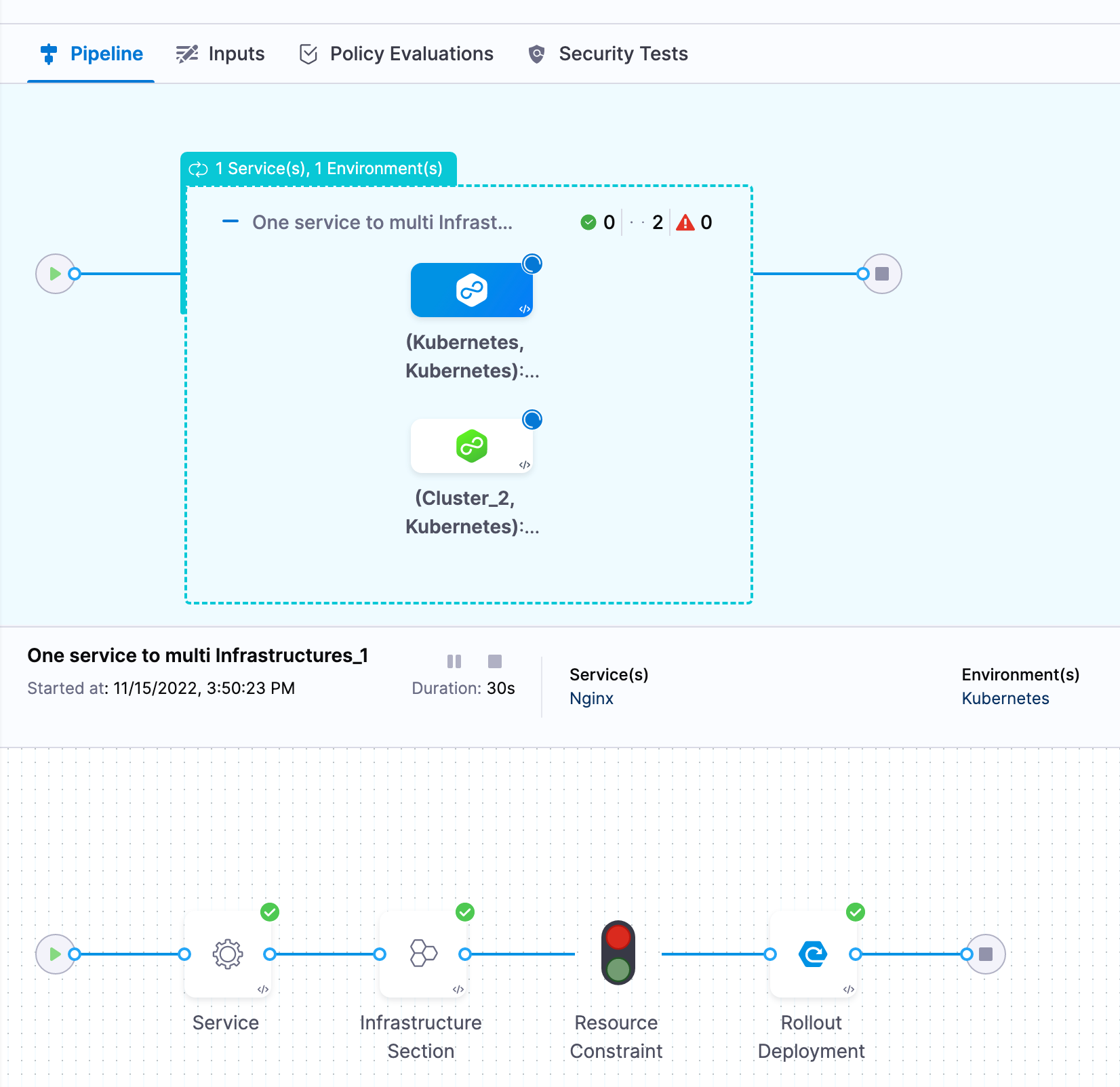 For example, let's say you host one infrastructure per customer and want to deploy your service to all customer infrastructures in the same pipeline. Instead of creating separate stages for each service and infrastructure combination, you can just deploy a single service to all infrastructures in the same stage.