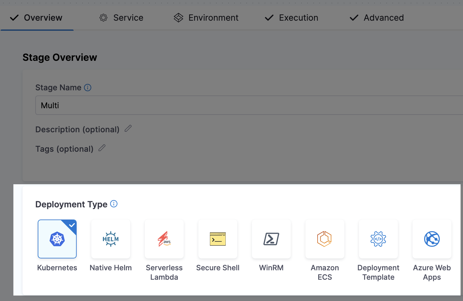 You can create services, environments, and environment groups inline when creating your CD stage, or you can create them separately and select them in the stage.