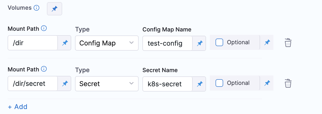Note: These are Kubernetes-native secrets, not Harness secrets. Therefore, masking or redacting of secret values is not handled by Harness in this case.