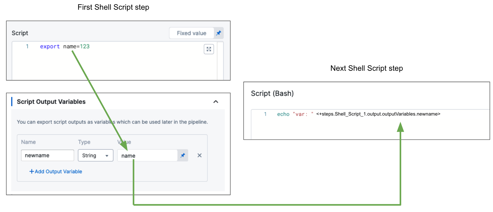 - Shell Script step Output Variables have a maximum size of 512KB.