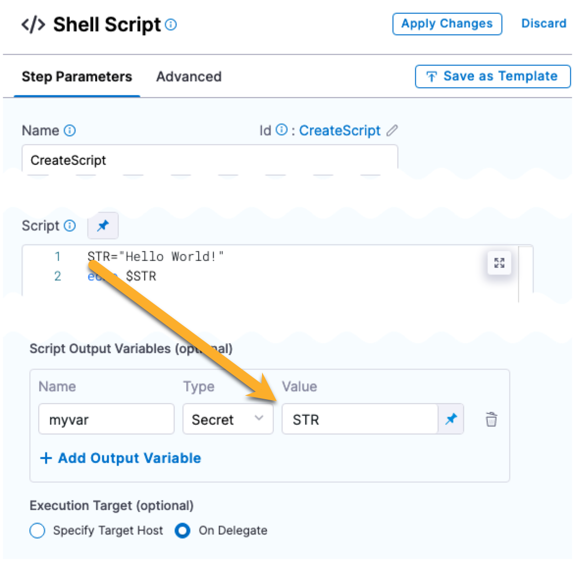 Below is an example of using secret variables in the Shell Script step where temp_secret