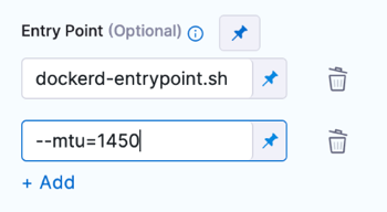 5. In Entry Point, you can provide a list of arguments, if needed. For example, the entry point for the docker:dind image is docker-entrypoint.sh. If you want to add a --mtu argument, you would include both the image entry point and the additional argument in the Entry Point specification.