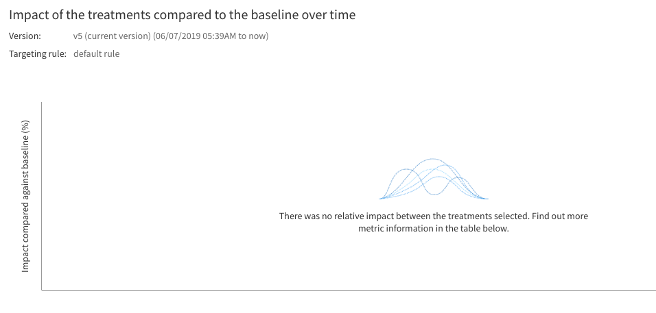 No users have an impression for the treatment. | This message appears if you are looking at a single treatment with no baseline and there are no samples. Ensure that the version and targeting rule you selected are serving traffic to the treatment you selected. |