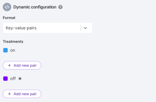 In the Format field of the Dynamic configuration area, select Key-value pairs as your format. You can then attach one or more configurations to each of your treatments.