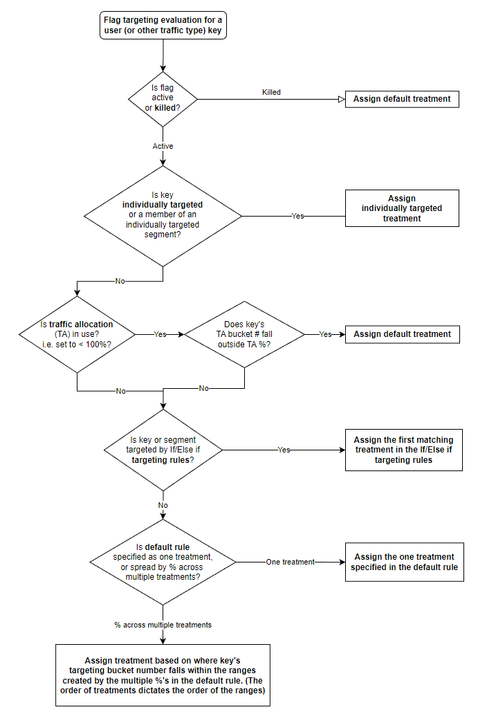 - The feature flag is killed. If a particular feature flag is killed, the default treatment overrides the existing targeting rules and is returned for all customers.