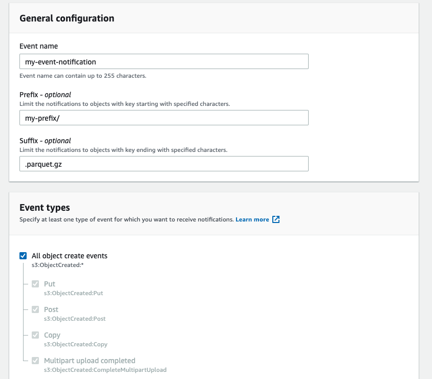 4. Under Suffix, add the suffix for your compression type, e.g. .parquet.gz or .snappy.parquet.