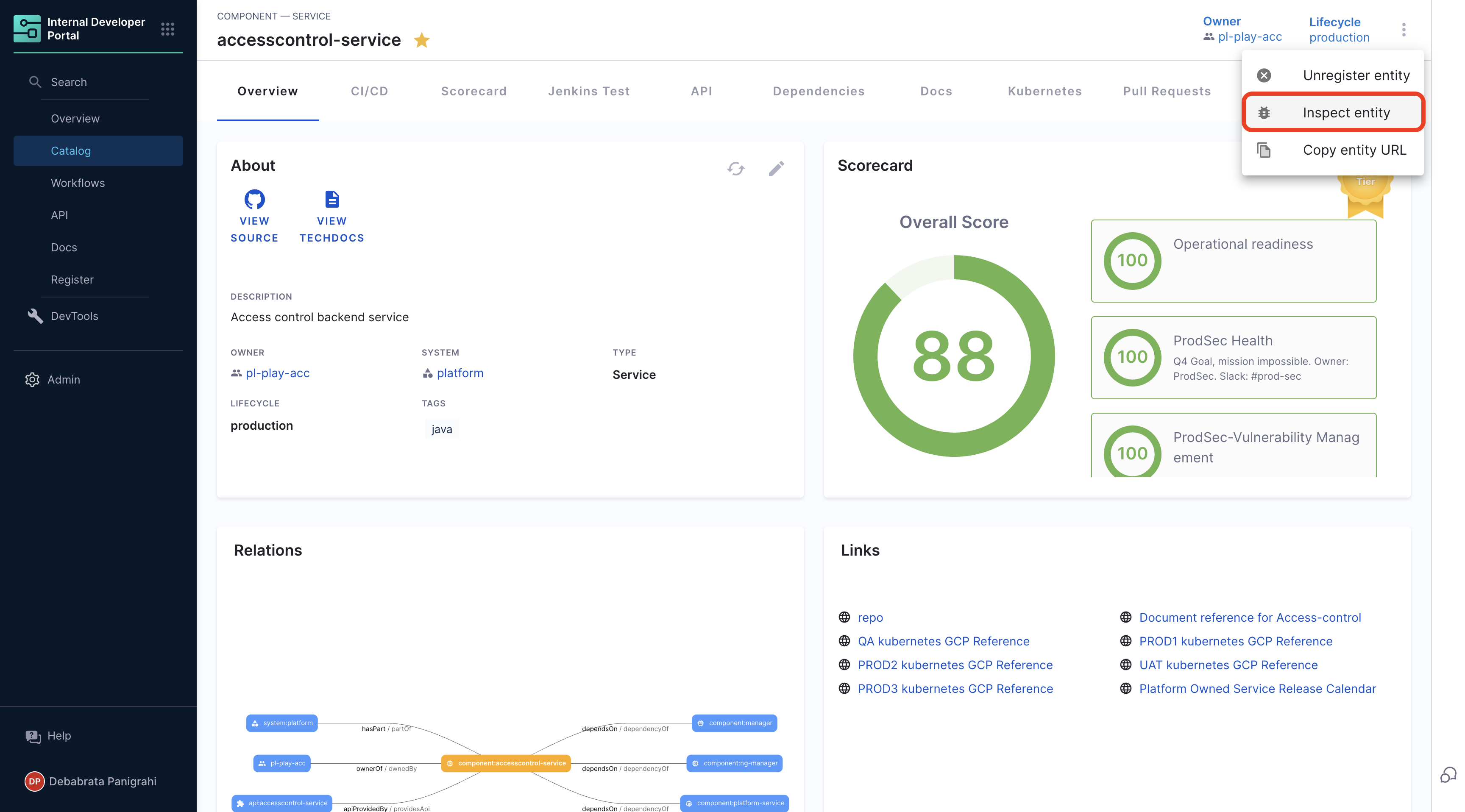 The response will register a software component in your IDP catalog as defined in the catalog-info.yaml