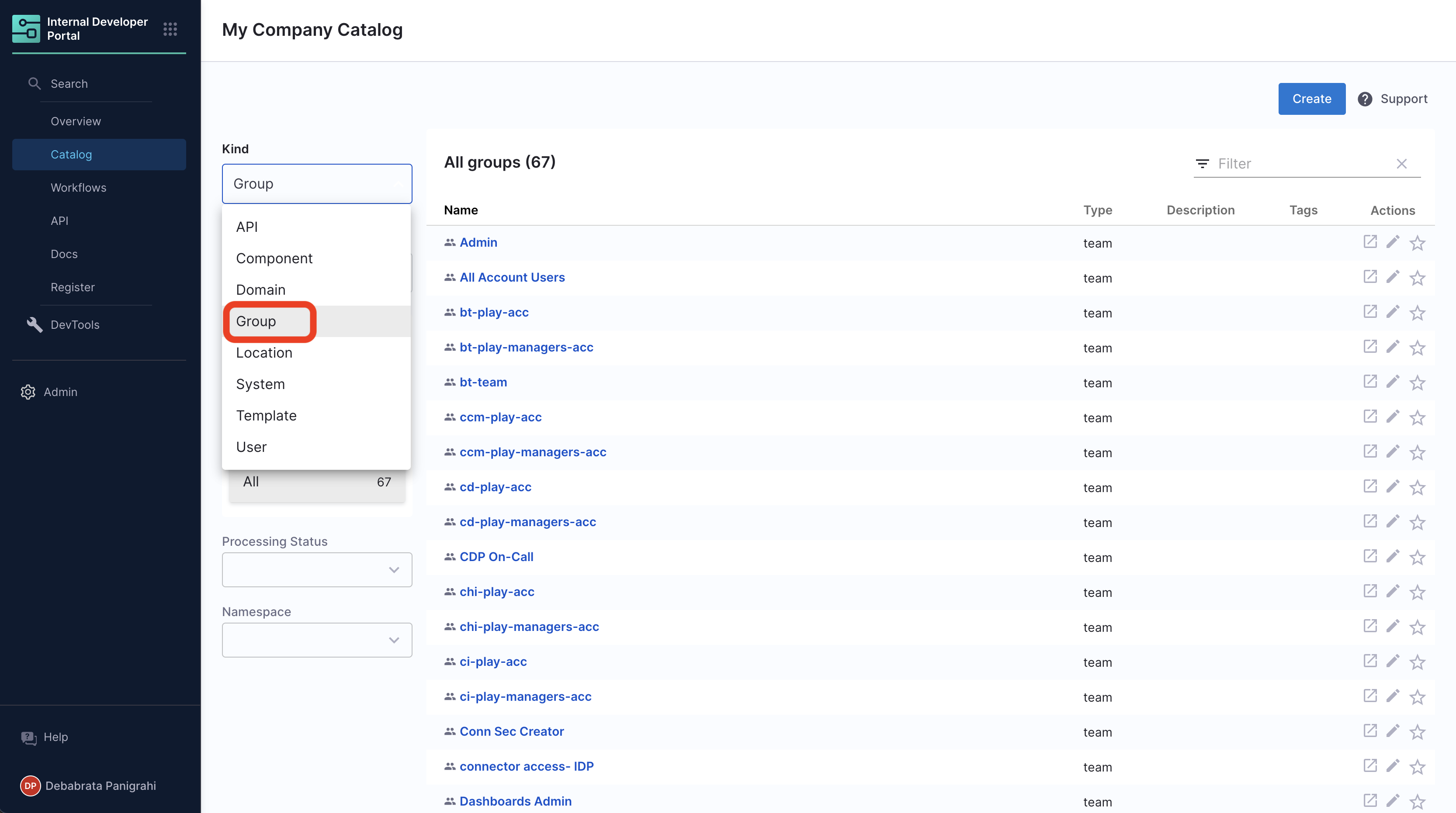 The Catalog in Harness IDP also supports addition of organizational entities like user groups directly, independent of their presence on the Harness Platform. These entities can be registered as kind: Group