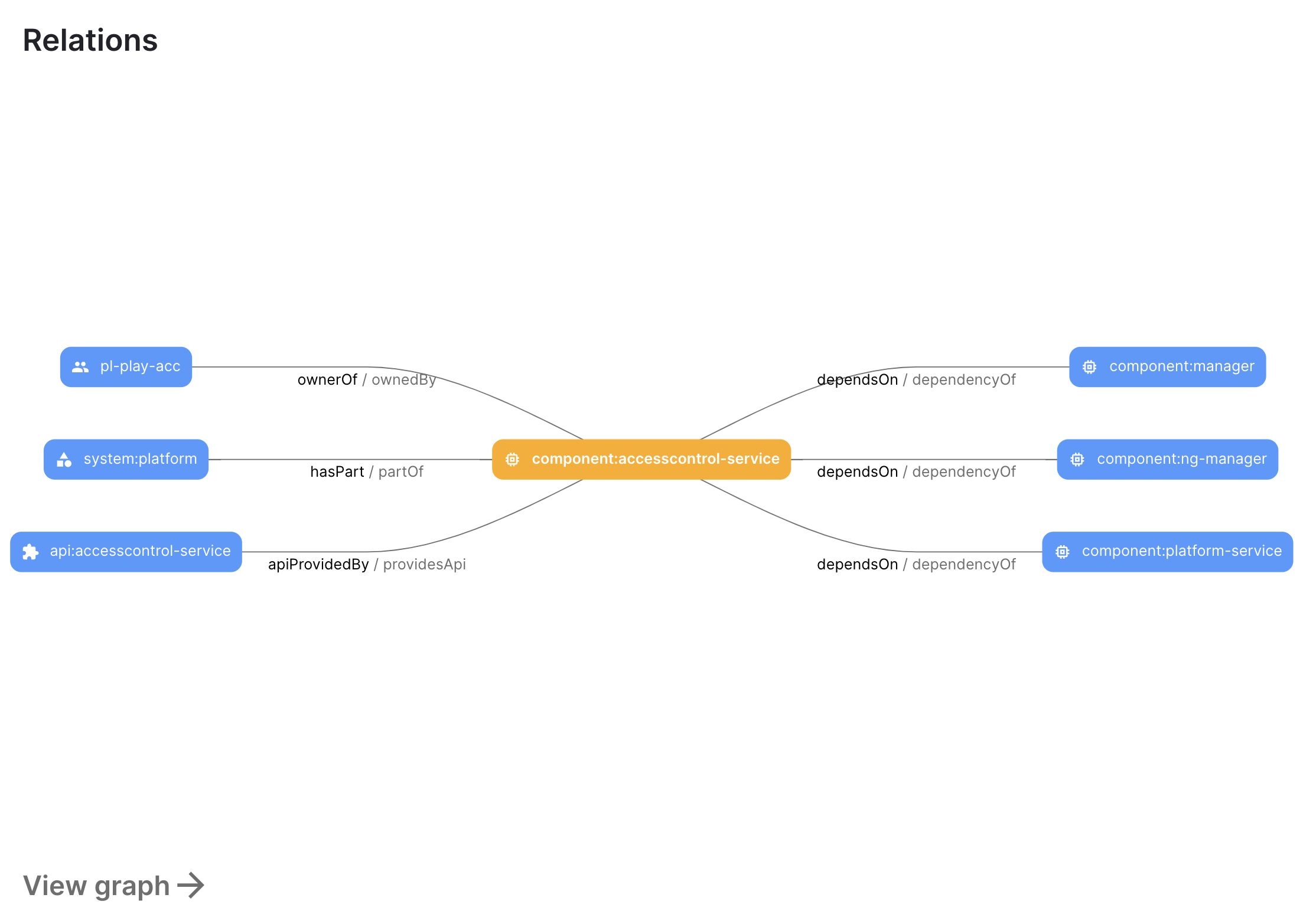 For the relationship graph to get populated, you need to add the dependencies in the catalog-info.yaml