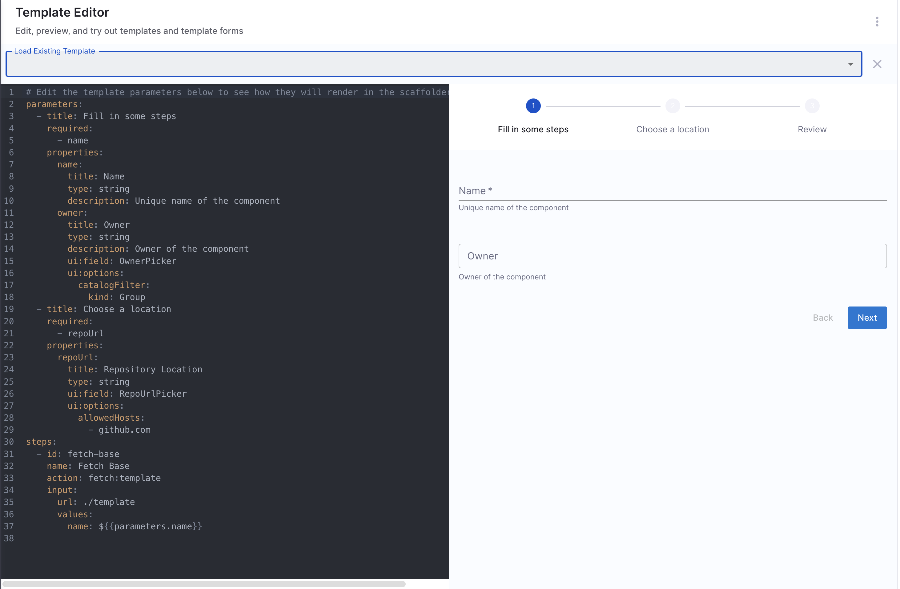 The syntax and guidelines for writing this YAML configuration file are inspired by Backstage Templates. Learn more about the Backstage guidelines here.