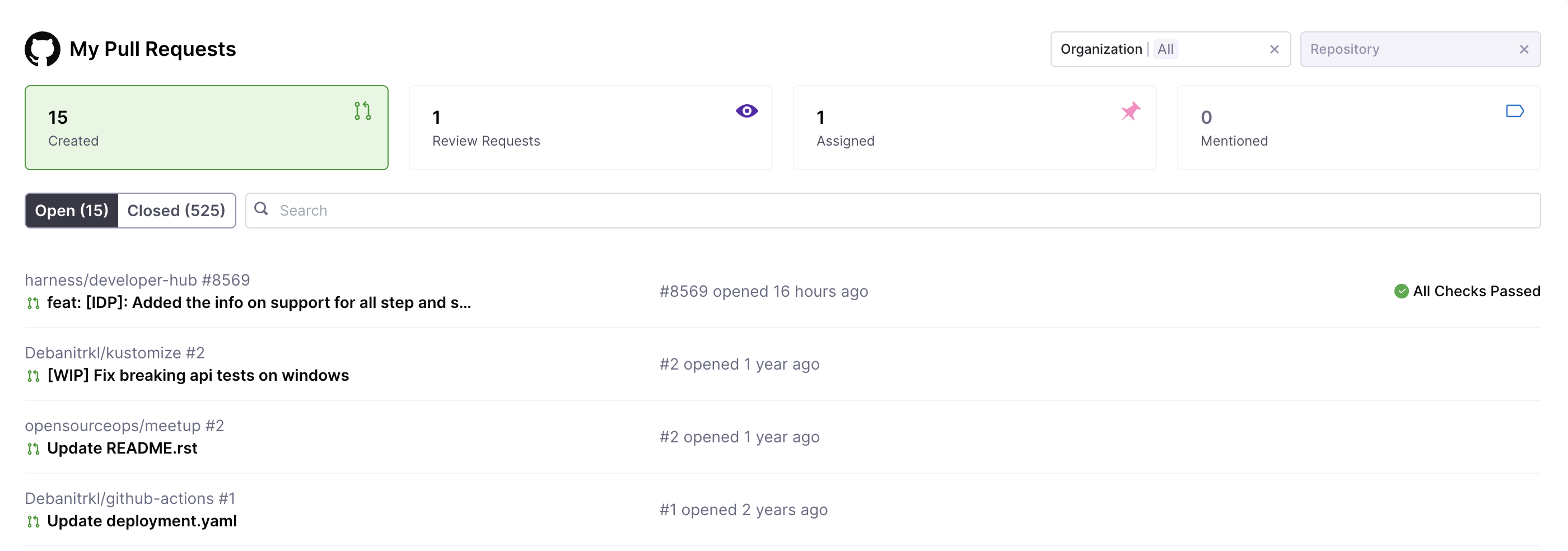 Value Addition: It will display data across all repositories you have permissions for, making it easy to track your contributions, review requests, and assigned PRs in one place without switching contexts.
