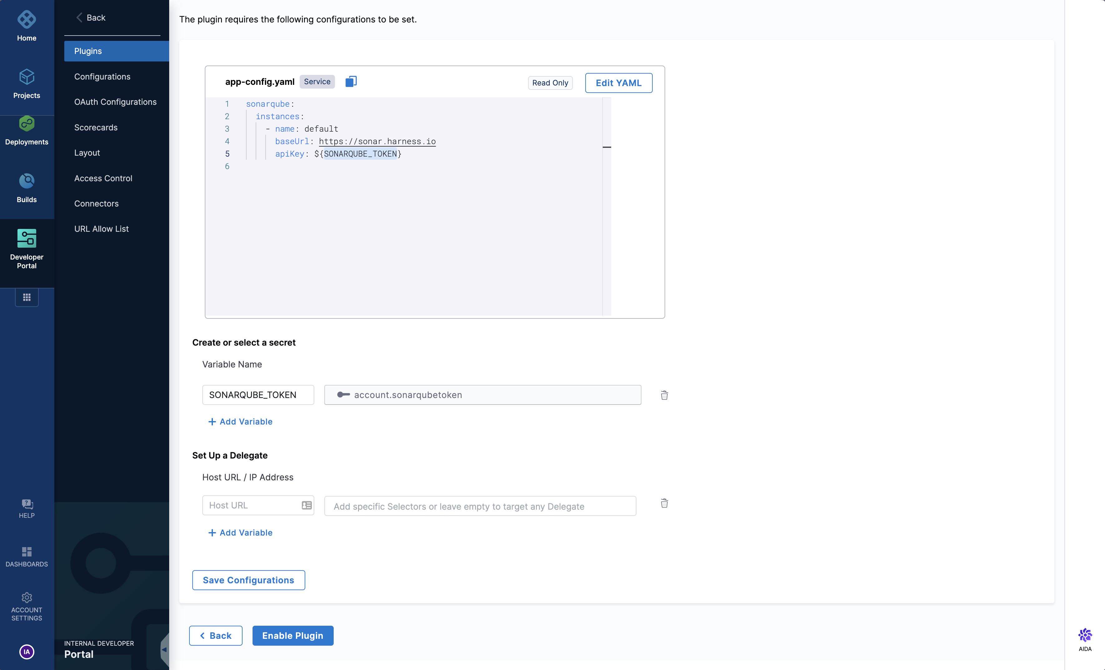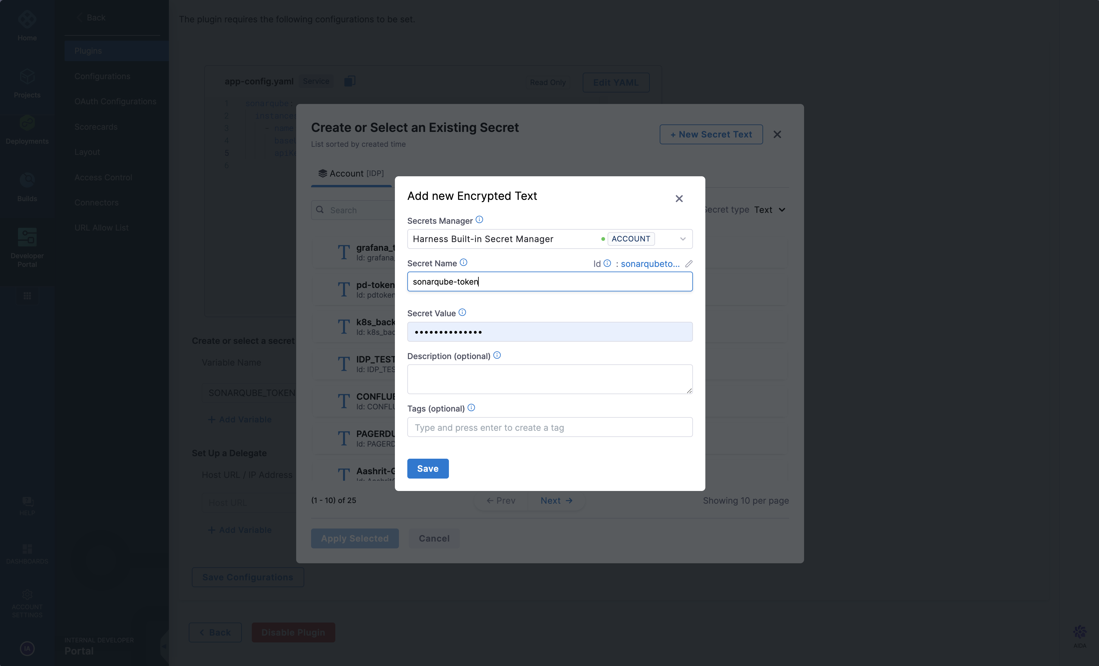 The SonarQube token configured in the Harness secret must be Base64 encoded. Using a raw, non-encoded token will result in authentication failures or missing project data when using the SonarQube plugin.