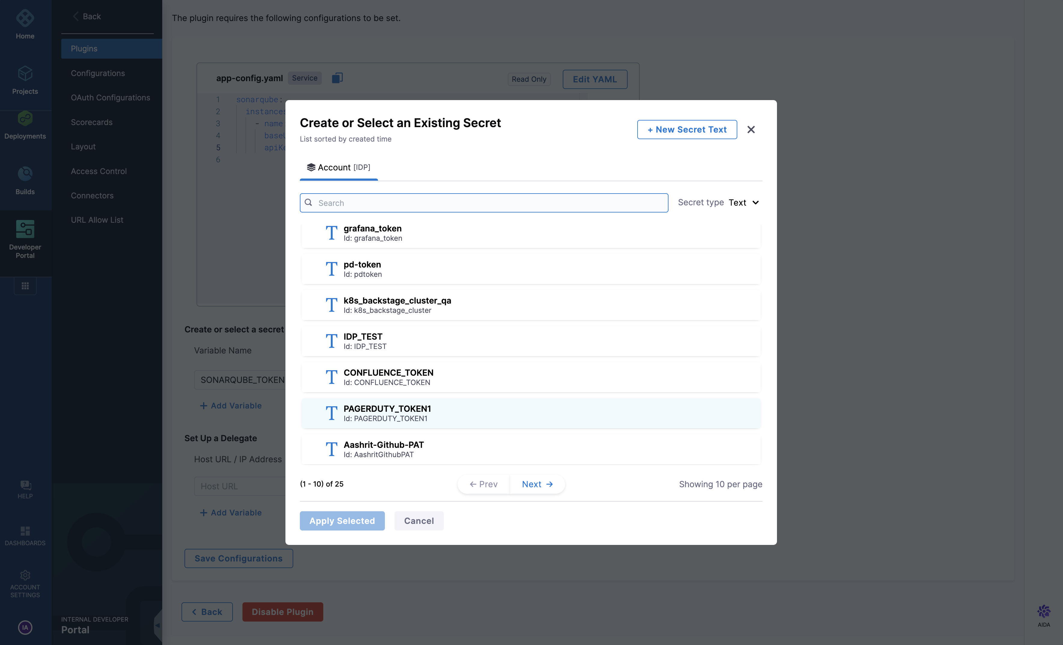 - Create secret in Harness to store API token, click on “New Secret Text” and enter values as shown below.