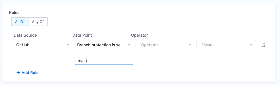 • Calculation Method: Fetch backstage.io/source-location annotation from the catalog YAML file to find repository details and verify the branch protection rules.