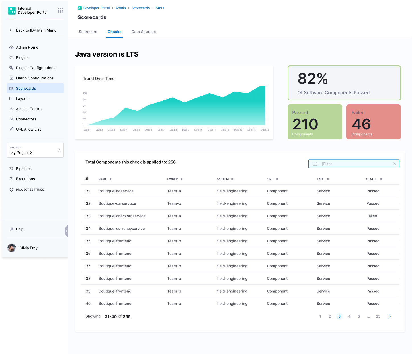 • The overview page lists all the components on which the check is applied, and the graph helps you to track time-sensitive information on the components on which the check has passed, this can be used to track functions like migration and upgrades across your software ecosystem.
