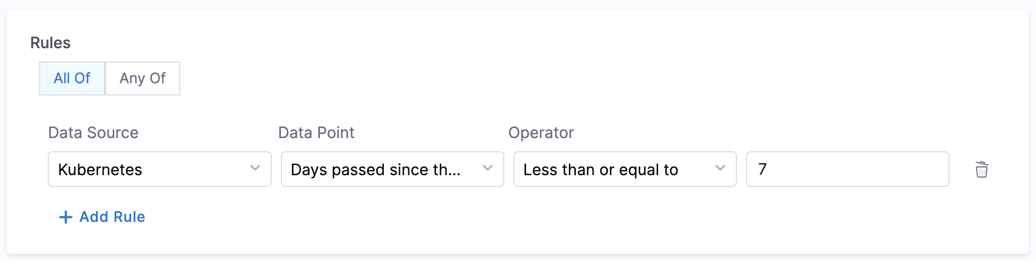 • Calculation Method: The label selector configured in the catalog YAML is used to identify the Kubernetes workload and the lastUpdateTime is used from the conditions section. The cluster details configured in the Kubernetes plugin are used. If more than one cluster is configured, the workload search is done in each cluster and the oldest deployment time of all is taken into consideration.