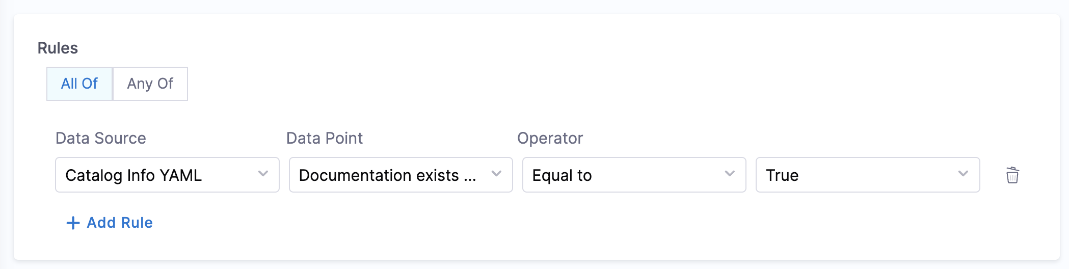 • Calculation Method: The catalog YAML is inspected to check if the backstage.io/techdocs-ref is present under the metadata field.