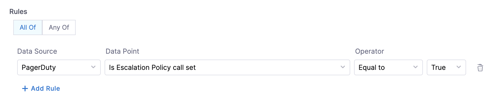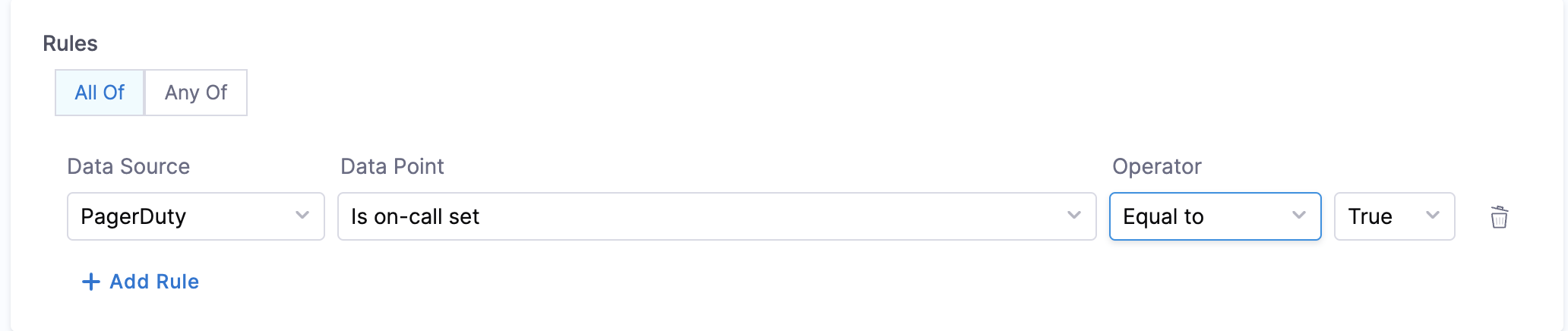 1. Is on-call Set - This data point can be used for creating rules that will check if the on-call is set for a given service.