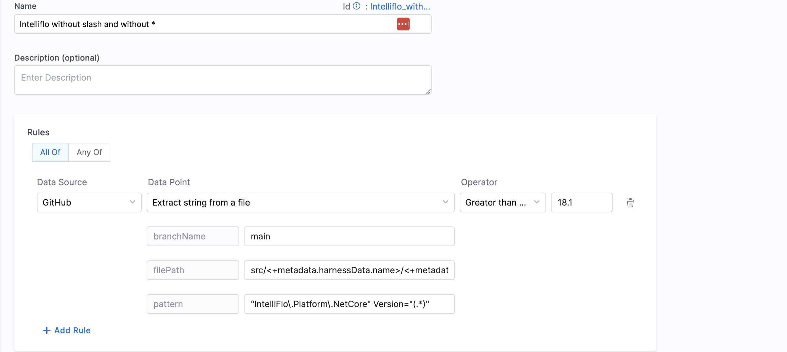 • Calculation Method: If a branch name is specified, it is utilized. However, if no branch name is provided, the system retrieves information from the catalog YAML file using the backstage.io/source-location annotation to determine the branch name and repository details. It is essential to specify the filename with its extension or provide the relative path from the root folder (e.g., README.md or docs/README.md) in the conditional input field, also the filename can be provided as a regex pattern, example for a file path /backstage/blob/master/scripts/log-20240105.anyextension the regex would be /backstage/blob/master/scripts/log-20240105\..*. After fetching the file, the designated pattern is then searched within the file contents and its value is extracted and returned.