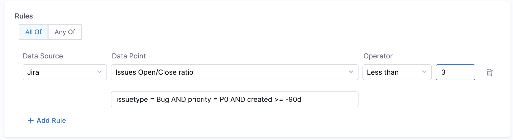 • Objective: Calculates the ratio between Open & Closed issues for the given JQL query.