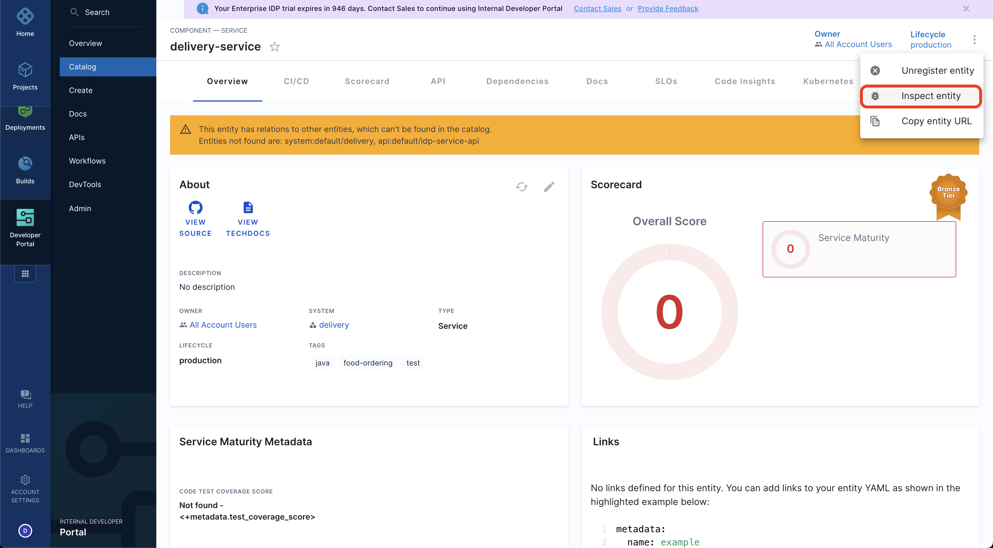 In this tutorial we will be creating Jira tickets using Workflows and add the information (i.e. ticket numbers) to the corresponding Software Component in the Catalog and display the same in the UI using Additional Info Card. The aim of this tutorial is to help you understand the usage of REST APIs to push information in the Catalog and then use them in different parts of IDP according to your use-cases.