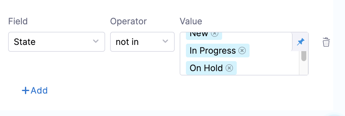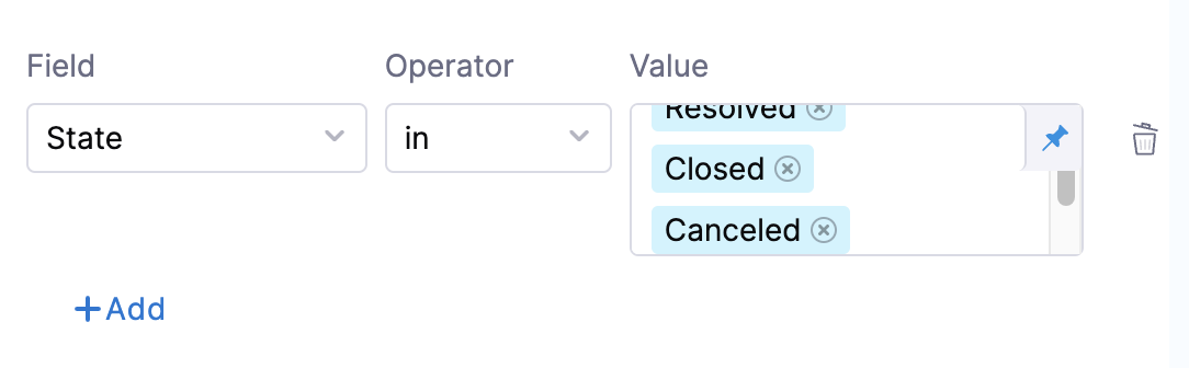Multiple conditions with the same Jira field are not allowed. Such use cases can be solved using in