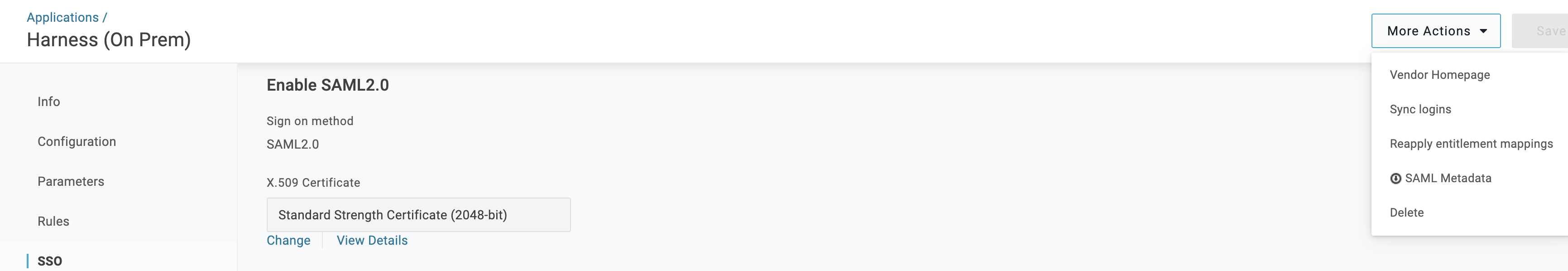 1. Set up SAML SSO in Harness as described in SAML SSO with Okta.