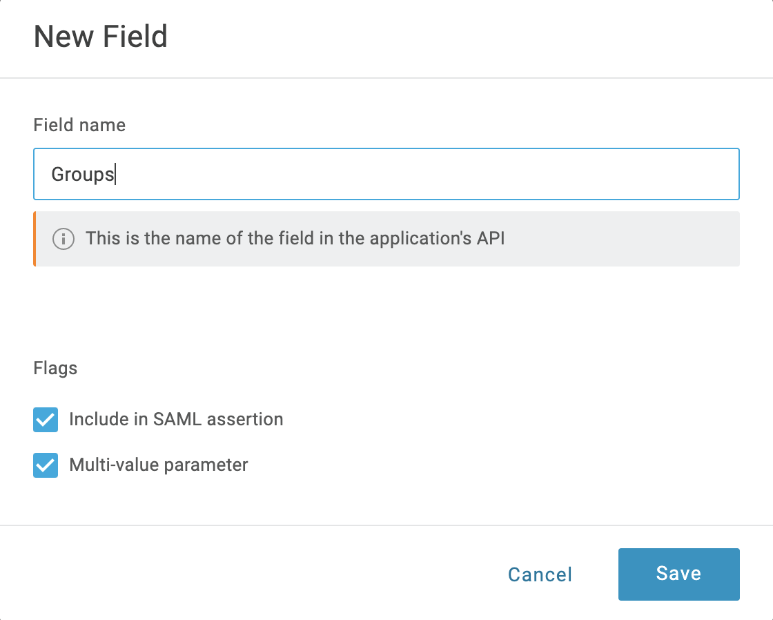 11. In the Group Name, enter the name of the Field Group you configured in OneLogin.