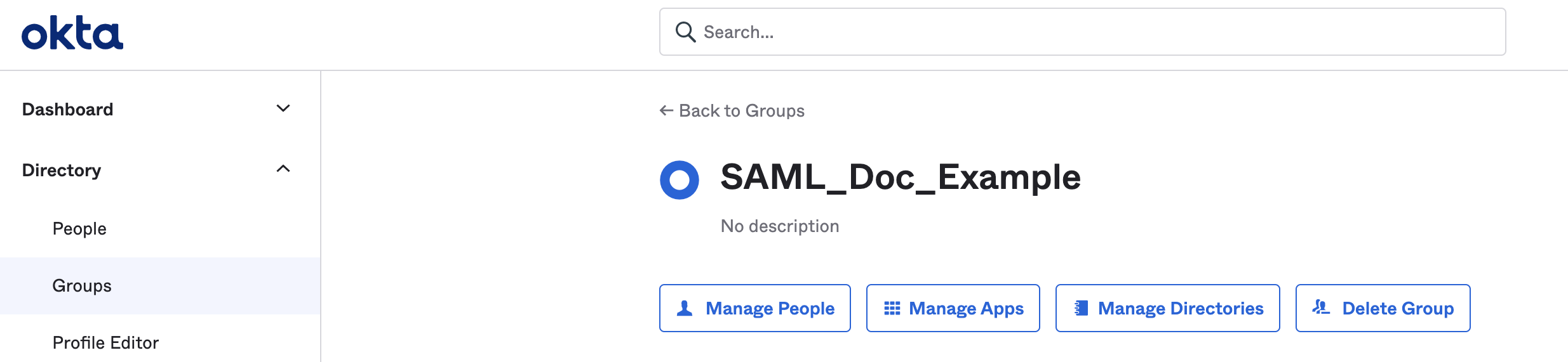 2. In Okta, create a user group and add users to the group, if you don't already have such a group.