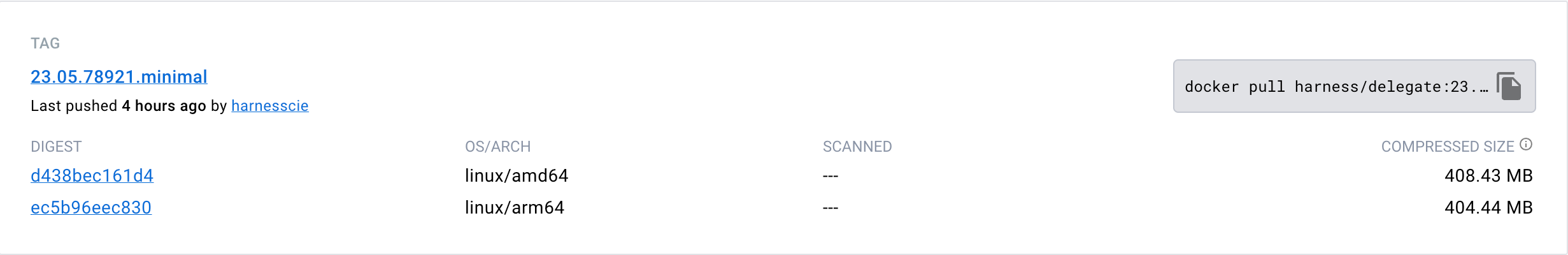 Harness recommends that you use the Harness Delegate minimal image (yy.mm.xxxxx.minimal