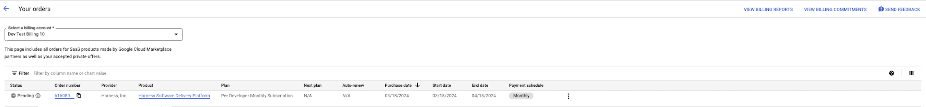 Purchase Harness products via the Google Cloud Marketplace public offer flow
