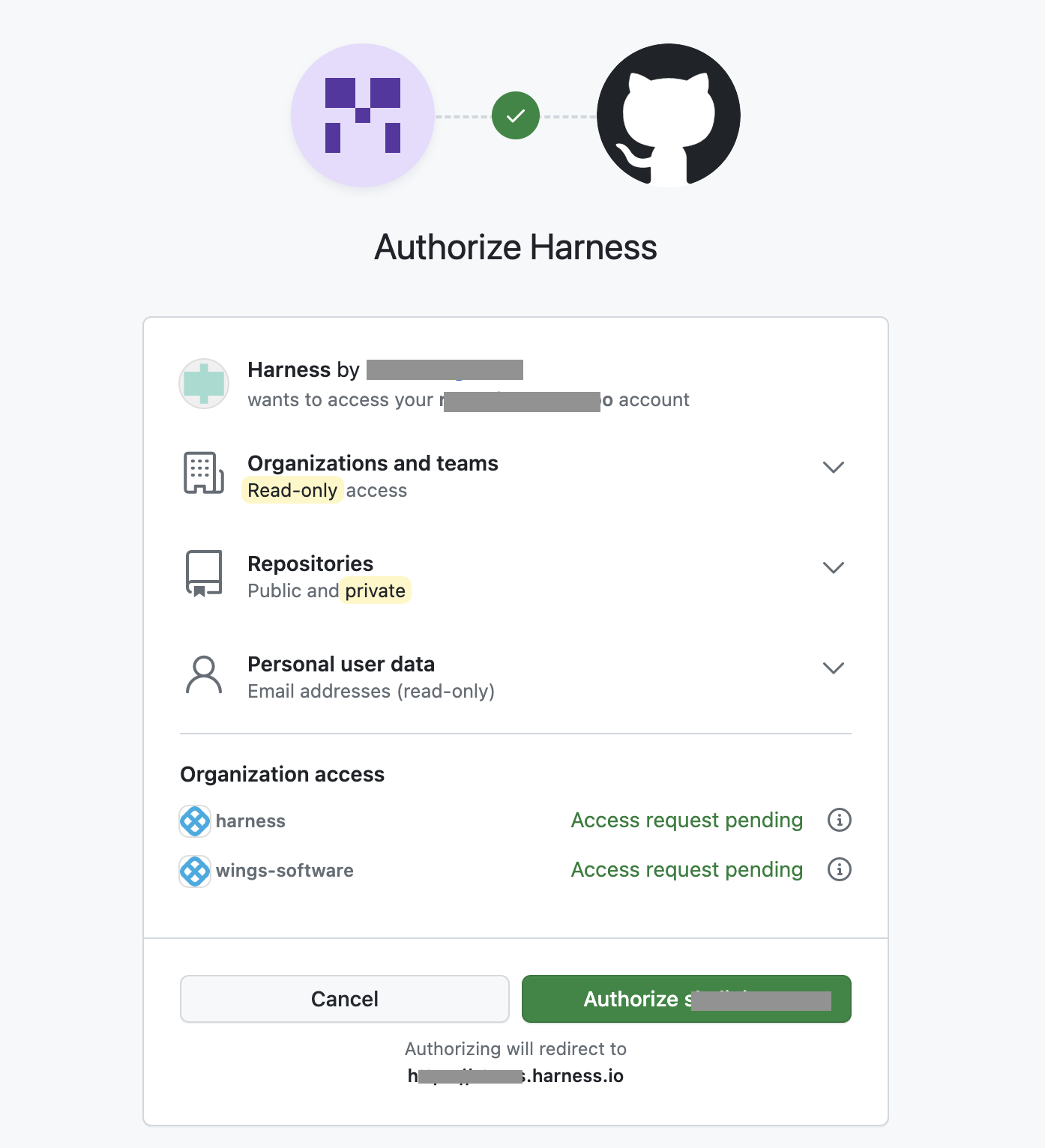 4. Select Authorize. Harness fetches the corresponding OAuth token associated with the Git provider and displays it under Access token for Git providers.