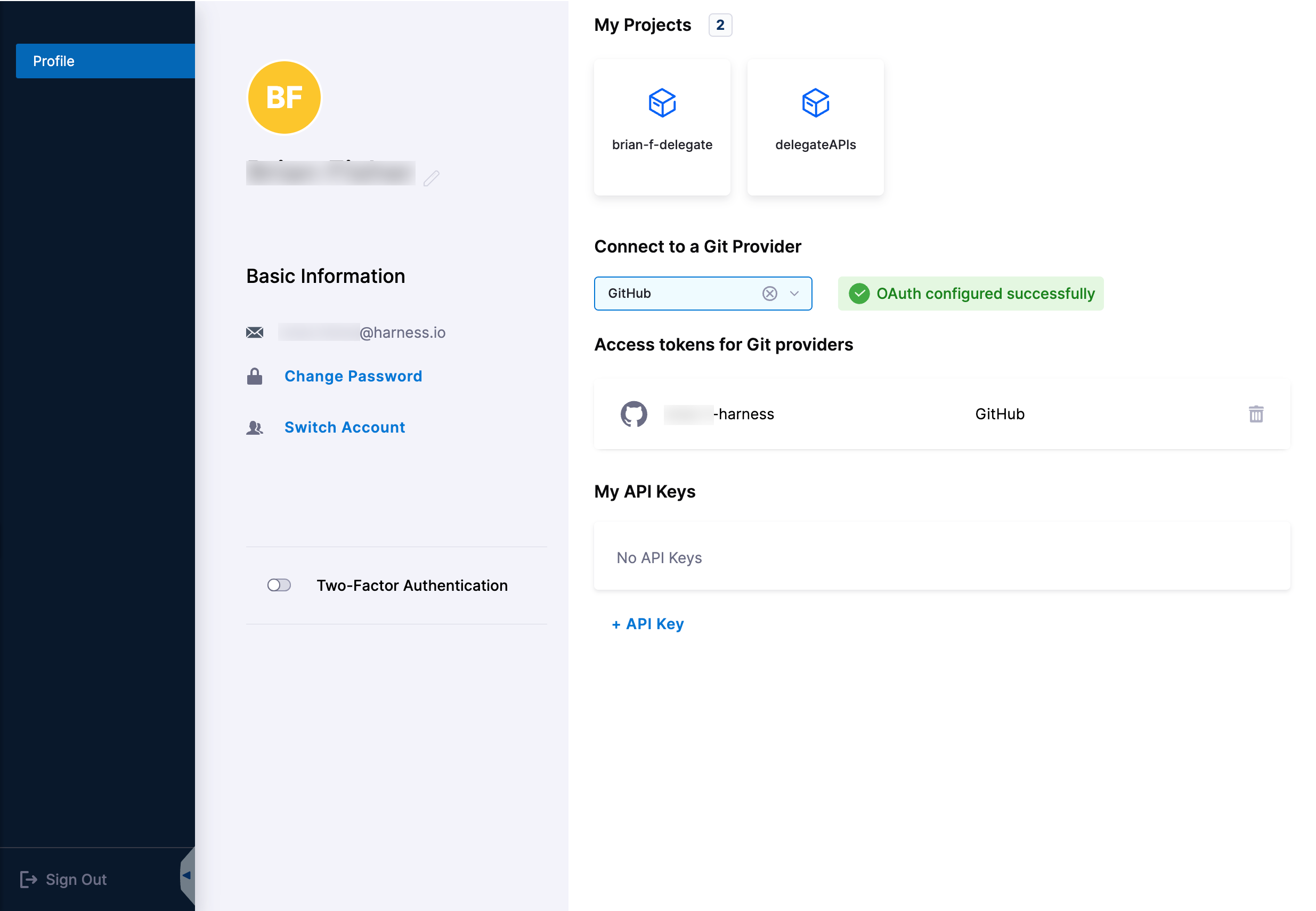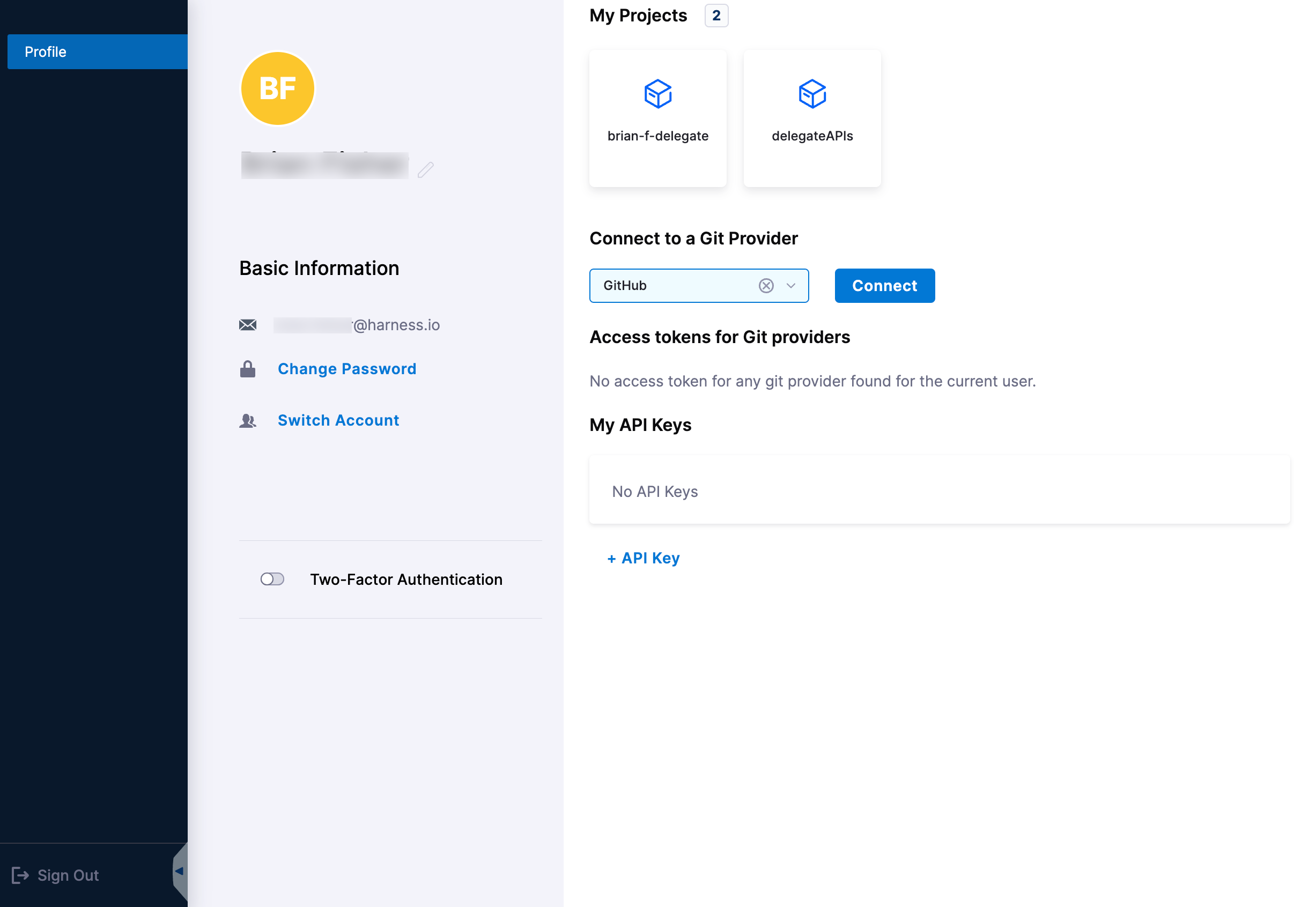 1. Go to your user profile in Harness.