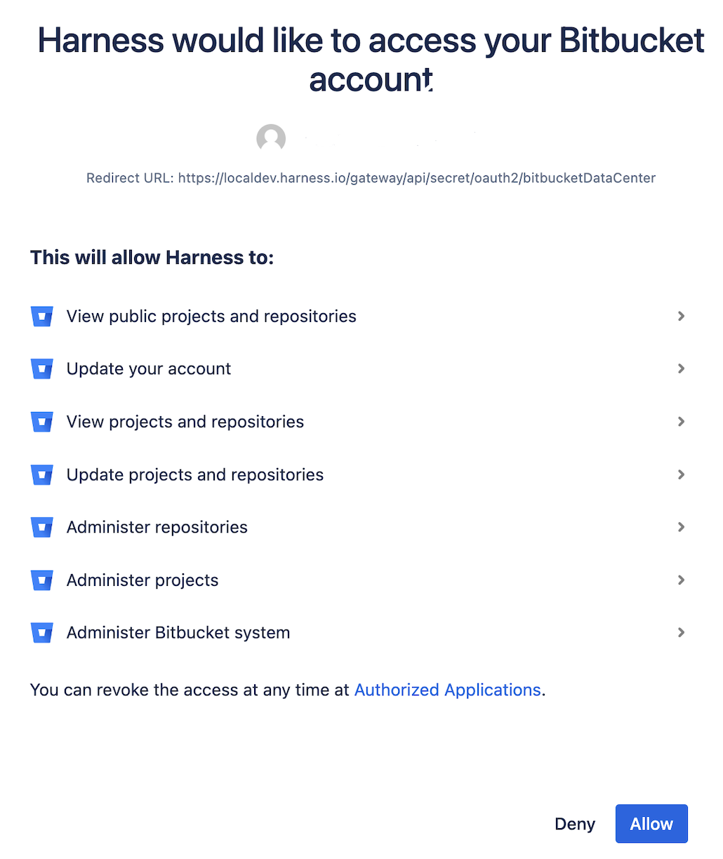 Currently, support for OAuth configuration with the self-hosted Bitbucket provider is behind the feature flag CDS_PROVIDERS. Please contact Harness support to enable this feature.