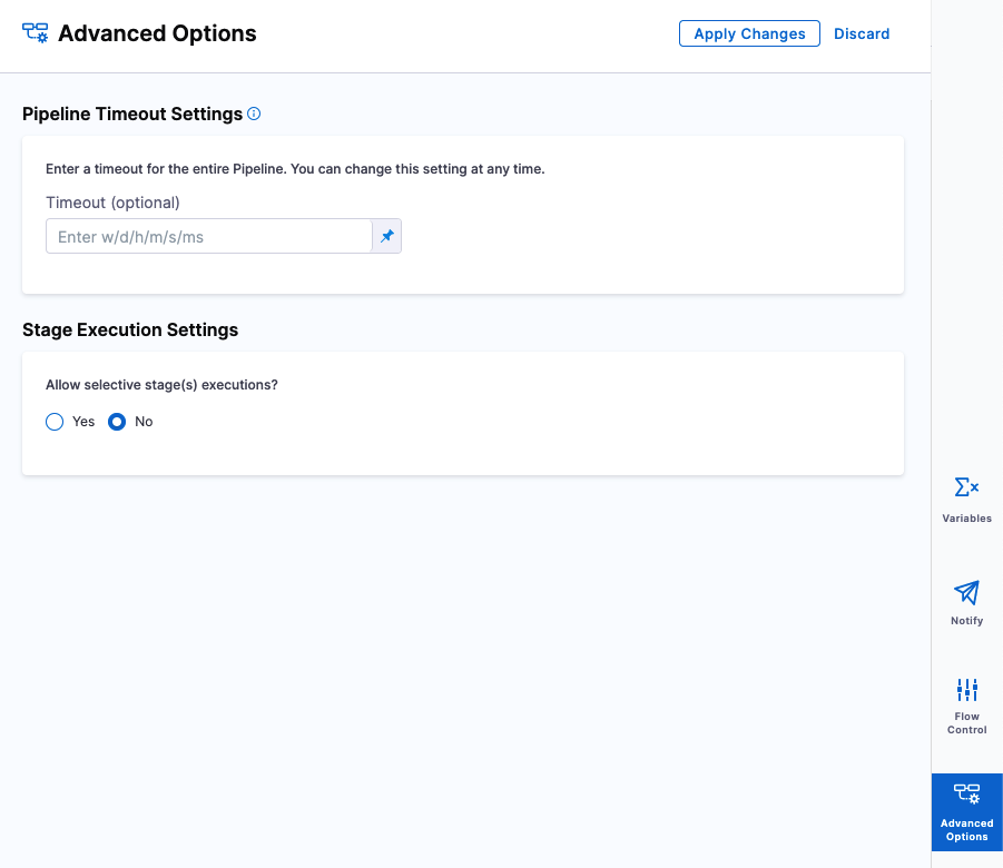 - In Stage Execution Settings, select Yes for Allow selective stage(s) executions.