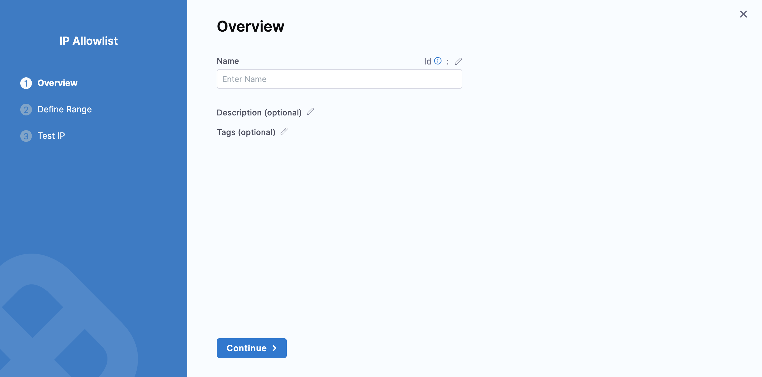 Enter a Name for the allowlist, and then select Continue.