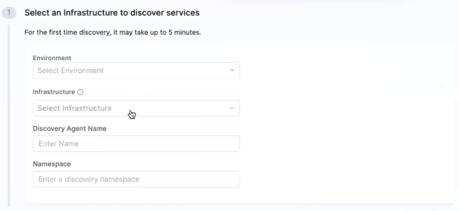 - Provide the Environment, Infrastructure, Discovery Agent Name, and Namespace.