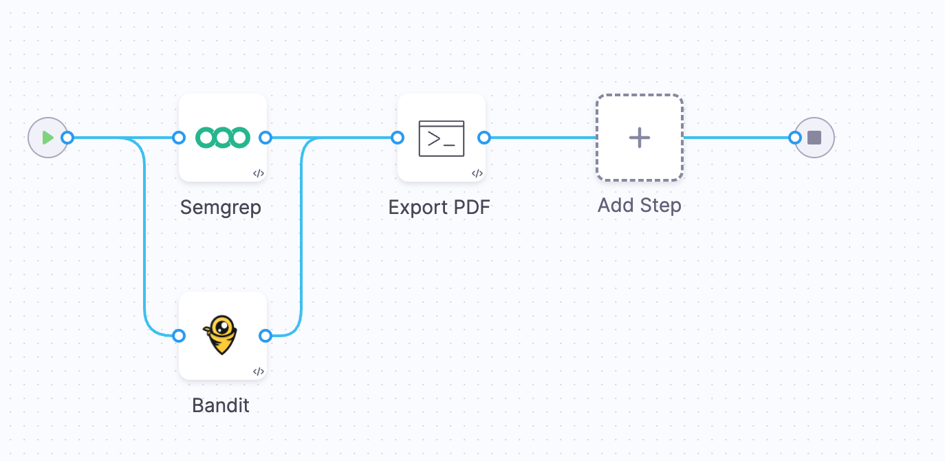 Add a Run step to your pipeline. This step must be placed after your security scan steps. If your pipeline includes multiple security steps, place the Run step after the final security scan step.