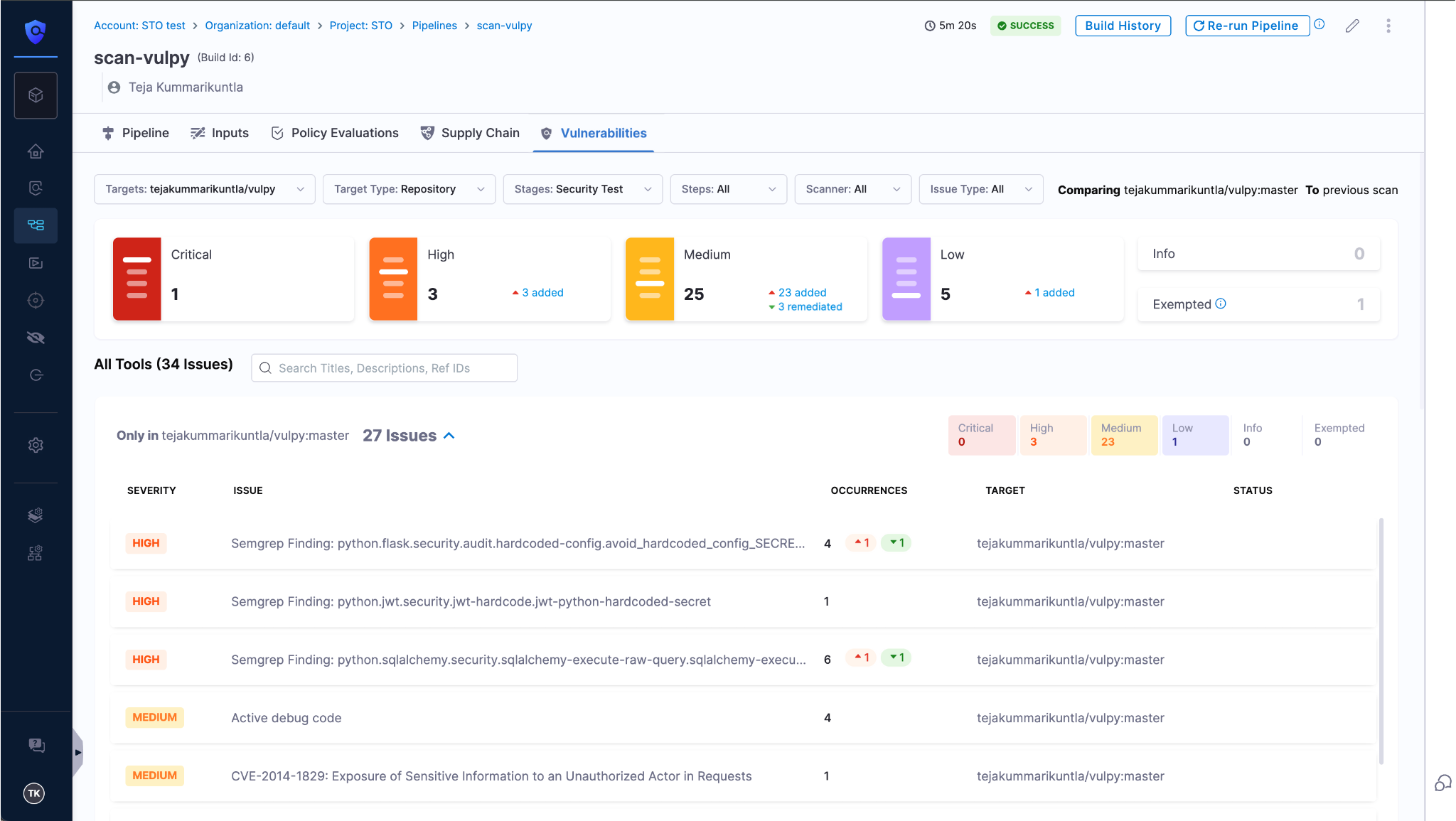 • Remediation: Steps from Harness AI and Scanner (see Fix security issues using Harness AI).